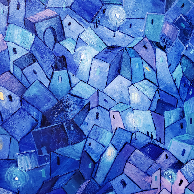 Starry Town is an oil painting that portrays a city where stars are nowhere to be seen. Instead, the city lights become our stars. With a skillful use of color, the painting conveys a dreamy, mysterious atmosphere, inviting the viewer to ponder the role of urbanization in our perception of the natural world.