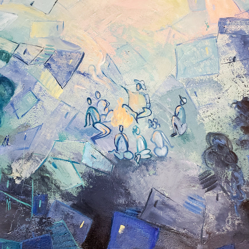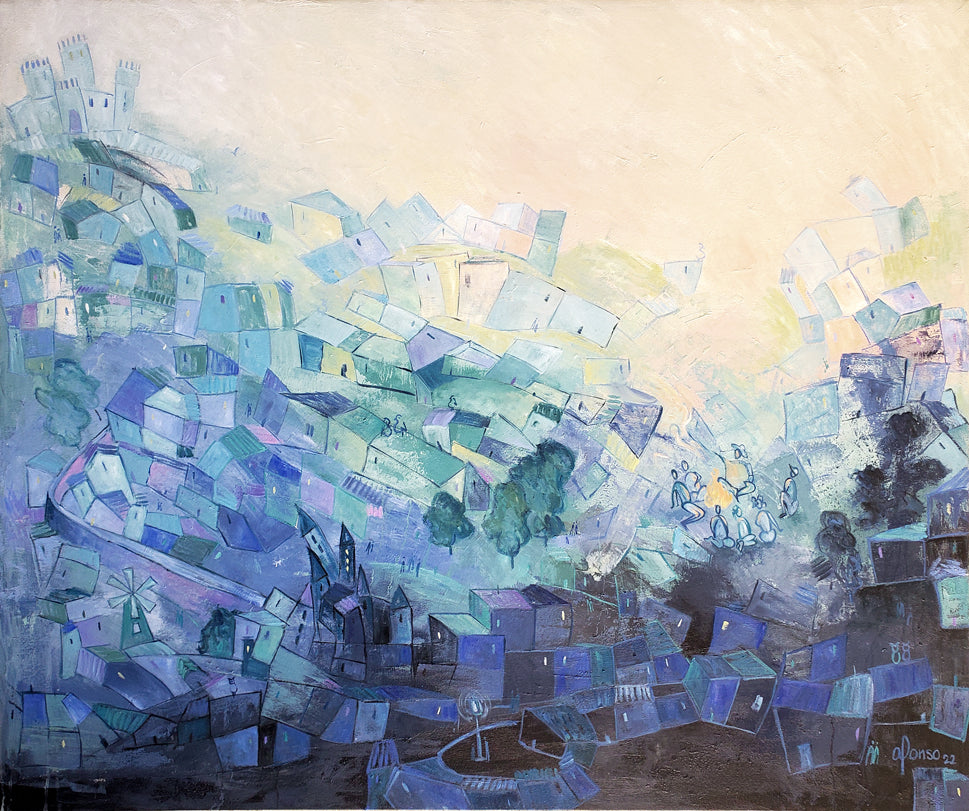 This work focuses on fantasy, stories and legends that are told over many generations and that are part of our childhood. Observing in detail, the viewer will be able to see owls, castles, palaces, roads, and various details that seek to evoke those stories.