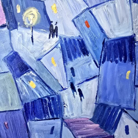 47,000.00 MXNThis piece is a unique artwork, dominated by deep blue tones that evoke the atmosphere of a rainy night. The lights shining from the houses suggest shelter and warmth, contrasting with the nearly empty streets where the rain falls relentlessly, dragging color downward as if the storm itself were painting […]